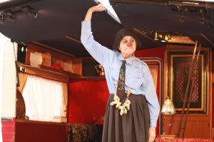 Le public commence à s’installer… la fenêtre de la caravane s’ouvre et Emma dirige la manœuvre, la commente. Quand elle estime que tout le monde est là… Bing ! La cloison de la caravane s’ouvre, se déploie et le plateau est dévoilé. C’est le salon d’une voyante extra-lucide tel qu’on l’imagine. Emma occupe tout l’espace, y compris et à s’y choisir une « cliente » pour prédire son avenir. L’heureuse élue bénéficie de toute l’attention d’une vraie voyante extra-lucide, de cadeaux, de conseils destinés à rendre possible ce qu’Emma a détecté dans son futur : l’arrivée d’un prince charmant moderne qui lui apprendra ce qu’est vraiment l’amour et transformera sa vie. Que ce futur radieux soit conditionné par le port d’un sachet de tisane contre la peau ou d’un collier « magique » autour du cou ne sont que des inconvénients mineurs et temporaires.