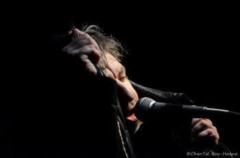 Il a le physique de bien trois nuits d’insomnies, de lieux interlopes, de cadavres en pagaille et la voix de circonstance, de nicotine, de rocailles sans filtre, râpeuse, éraillée, presque égarée devant ce micro, sous les sunlights. Avec cependant l’insolite grâce d’un corps qui presque mime le petit rat d’opéra et, toutes griffes dehors, cherche sa souris.