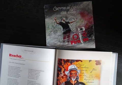 J’ai longtemps gardé ce bel objet sur un coin de mon bureau, afin de le mieux savourer. J’hésitais devant la couverture cartonnée, comme si je risquais de la déflorer. Magnifique dessin de Marcel Nino Pajot. Et puis après plusieurs jours je me suis décidé à ouvrir le livre. Les remerciements entament la lecture. C’est sympa de commencer par remercier les hommes et femmes d’équipage. J’ai d’abord feuilleté, avec émerveillement, jusqu’à découvrir le CD à la fin du livre. Alors commence l’aventure. J’embarque sur les pages d’écriture et de dessins, le disque lève l’ancre sur la platine, le Pirate Didier Delezay donne de la voix et l’équipage s’active chacun à son poste. La poésie souffle doucement avant de gagner le large sur quelques notes de piano : « Nos chants de résistance / Humanisme de combat / Riches de nos différences / La rose et le réséda » L’ombre d’Aragon veille sur le bateau. Tout va bien. Mais le voyage ne sera pas pour autant paisible.