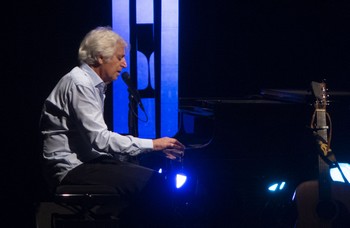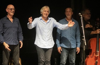 C’est toutefois en solo qu’Yves Duteil débute sa prestation. Au piano, qui plus est, surprenant ainsi ceux qui n’ont de lui que l’image d’un guitariste folk. Avec cette petite merveille de délicatesse qu’est L’écritoire. Accompagné du seul violoncelle, le chanteur enchaîne avec A l’abri du meilleur et son classique Le mur de la prison d’en face, tandis que la contrebasse fait son apparition sur Fragile. Des chansons épurées, accueillies dans une émotion palpable. Avec Argentine viendront s’adjoindre les percussions, donnant à la salle un petit air de Brésil. L’équipage est alors au complet.