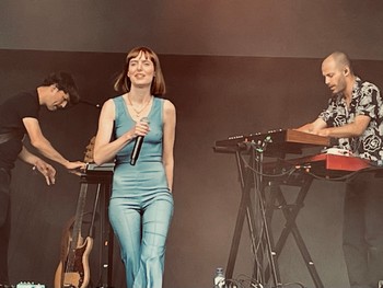 Dans l’après-midi, découverte de la pop de Marie-Flore, dont le deuxième album en français est sorti en 2022. Des chansons déclinant essentiellement le thème du cœur brisé, sur des airs plus entraînants que le propos. Une jolie voix, légèrement brisée, portée par une artiste souriante et pas bavarde. Agréable mais aussi redondant (ah, cette impression d’avoir entendu le même morceau une heure durant !).