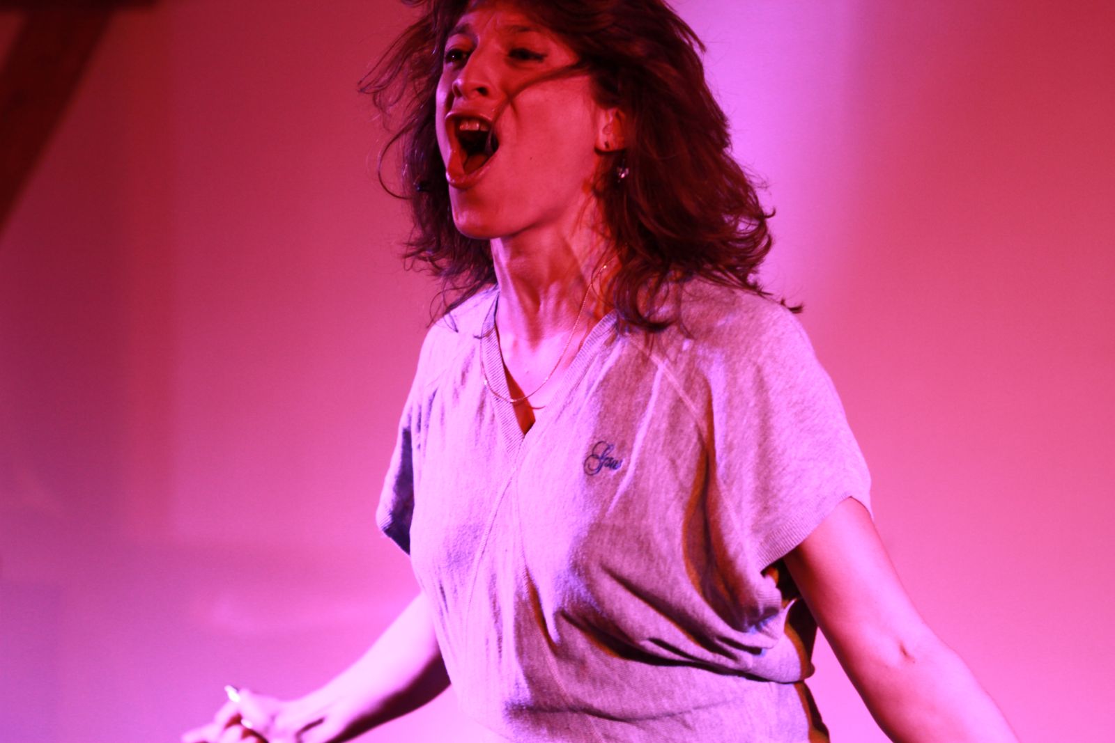 La rage a failli me reprendre lorsqu’elle demande au public de se lever pour participer à son show ! Mais je me calme et je reste assis ainsi que quelques récalcitrants.