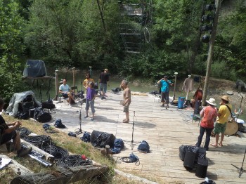 Loin, très loin de là, la foule se presse au grand rituel de Barjac où il faut être, le rassemblement sur la grand’place, la déambulation, et déjà le premier concert, la première grande queue devant les grilles du château et les premiers débats dignes de Lacan, dans les rangs. Ici, sur le mont Faï, l’espace est pour nous, un cours d’eau serpente à nos pieds. L’eau est rare, on tourne au vin, à la bière. Nous sommes au mitan d’une montagne majestueuse et fière qui pour l’instant fait fête à la chanson, lui concède une place, lui fait scène. Une scène inoubliable, sur laquelle il va de soi nous reviendrons. On dit le FestiFaï unique. Il l’est.