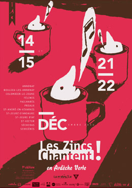 Festival Les Zincs chantent, du vendredi 14 au samedi 22 décembre 2012. Détails de la programmation et des lieux ici.