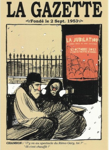 émo Gary a célébré ses soixante ans et, sans nullement battre en retraite, la fête : c’est sa Jubilation. S’il bat, c’est la peau du tambour, tannée par les pavés, en haut des barricades. S’il bat, c’est qu’il combat. On ne peut évoquer cette scène-là sans en donner le la. Le la est politique, précis, pressé. Pas de cette gauche molle, flasque mais adroite, non… Si le week-end prochain, en cette même ville, le facteur Besancenot vient faire la première partie de Rémo Gary et de Michel Boutet, ce n’est sans doute pas totalement fortuit.
