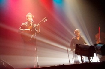 Du tout du tout… Presque Oui ne s’est pas arrêté en 2011 avec Ma bande Originale son superbe CD plein de charme, de pétulance, de fantaisie et de solidarité. Il est plus vivant que jamais avec une belle brochette de nouvelles chansons qu’il produit sur les scènes de sa région (ainsi samedi dernier à Loos-en-Gohelle) et d’ailleurs, en attendant un disque qui sera enregistré à l’automne 2014. Les découvrir en spectacle est un vrai plaisir, car elles sont denses de musique, de poésie et de sens… Après la mélancolie de Peau Neuve et l’humour salvateur du dernier album, ces chansons posent les questions fondamentales de l’individu dans la force de l’âge… Ainsi, derrière un premier abord léger, se profile des interrogations sur la vitesse du temps et la dérision de vouloir la dompter (Le vœu) ou sur la vanité de prétendre tout connaître au-delà des profils (Les ombres chinoises) ou d’accéder à tout toujours (Le pompon). De même il chante l’amour au long cours et son chemin parsemé d’énigmes existentielles sur sa vérité et sa longévité (On saura pas), mais aussi les transformations de vie qu’il produit (Tes anges – Tout me parle de toi – Depuis qu’elle m’aime). Et je retiens aussi Un baiser dont on ne sait, dans les circonstances de l’événement, s’il est le premier ou le dernier, s’il est naissance ou mort, ou les deux ensemble dans la même entité : très poignante chanson comme sait les distiller Thibaud.