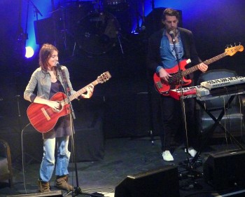 Mais avant cela, une première partie, guitare/basse électrique, s’offre à nos oreilles gourmandes et ravies… mais pas pour longtemps, malheureusement… En effet, il y a avait de quoi rester coi, ou pour le moins dubitatif, devant la prestation de Constance Amiot, dont j’avais pourtant plutôt apprécié l’album, et dont NosEnchanteurs vous a entretenu il y a peu puisque elle avait assuré la première partie de Jeanne Cherhal au Bataclan au mois de juin. Bon, sans s’étendre d’avantage, disons simplement que l’ensemble, pseudo-folk de bon aloi pas bien emballant, n’a pas grand-chose à dire et le maquille bien maladroitement derrière un anglais de pacotille assez envahissant, même lorsque les titres sont censés être en français. Je le dis d’autant plus librement que j’ai, moi aussi, un accent déplorable à couper au sabre d’abordage, mais que j’ai au moins la décence de m’abstenir de chanter… Et que dire de ces transitions laborieuses nous abreuvant ad nauseam de citations diverses ? Bref.