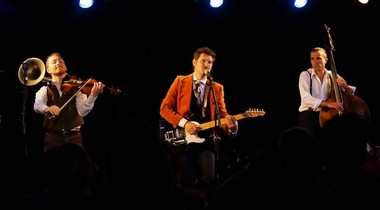 L’accompagnement tour à tour rock, world tendance tzigane, virtuose mais plein de fantaisie (le violon-trombone et le banjo à l’archet de Frédéric Jouhannet en gilet rayé, la contrebasse valsée et la scie musicale de l’expressif Christophe Foquereau, catogan et chemise blanche) participent de cette impression positive. La vie ? Mieux vaut en rire se dit-on !