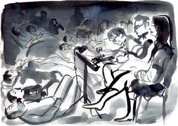 Le public est confortablement allongé sur des transats. Ou par terre, sur des coussins, des oreillers. On regarde ou on dort. On se regarde dormir, moi je m’écoute ronfler.