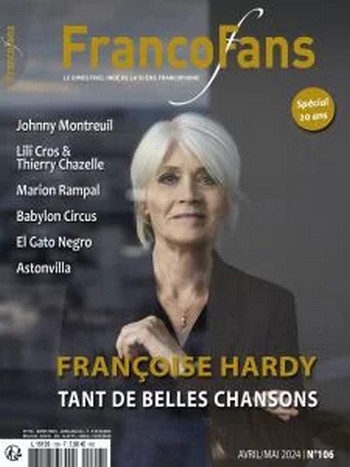 Autre et notable anniversaire, celui de la revue Francofans qui, elle, fête ses vingt ans, par son numéro 106, du 30 mars au 29 mai avec Françoise Hardy à la une. Durer si longtemps (et c’est pas fini) dans une chanson un peu à la marge du business, c’est rare, c’est exceptionnel ! Bravo. En plus d’Hardy, on trouve au sommaire des articles sur Marion Rampal, Johnny Montreuil, Lili Cros & Thierry Chazelle, El Gato Negro, Babylon Circus et Astonvilla. En kiosques (attention, c’est parfois difficile de la trouver) et plus sûrement sur abonnement. Bon anniversaire ! Le site de Francofans, c’est ici.